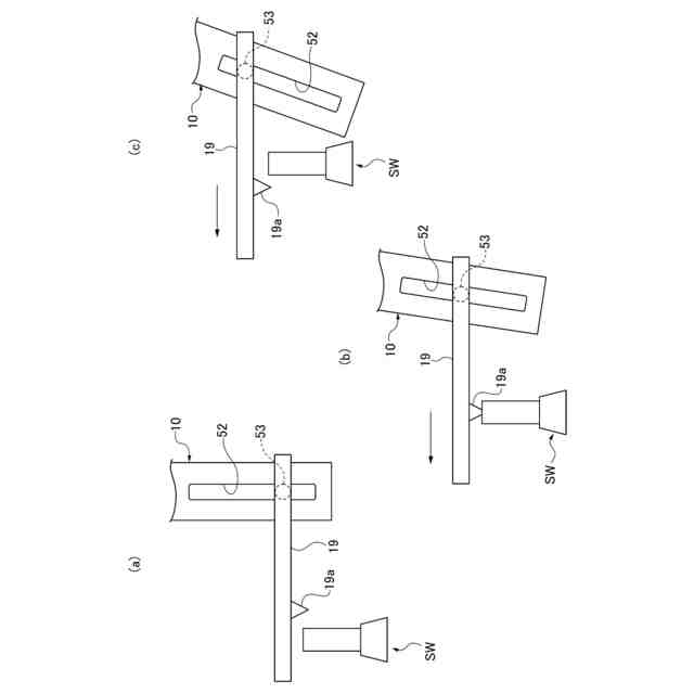 【解決手段】操作ノブ10に連動して往復移動するリンク部材19の駆動部19aが、操作の往行程においては、スイッチSWを押下しない第1位置、押下する第2位置、押下しない第3位置、へと順に移動する。制御部101は、ヘッドライト103を動作させていない場合に、スイッチSWがOFFからONに変化したことに応じてヘッドライト103の動作を開始させ、さらにスイッチSWがONからOFFに変化してもヘッドライト103の動作を継続させる。また、制御部101は、ヘッドライト103を動作させている場合に、スイッチSWがOFFからONに変化したことに応じてヘッドライト103の動作を停止させる。