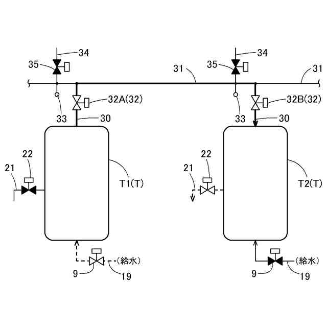 前記第一貯湯タンクと前記第二貯湯タンクとに連通する通湯管と、が備えられ、