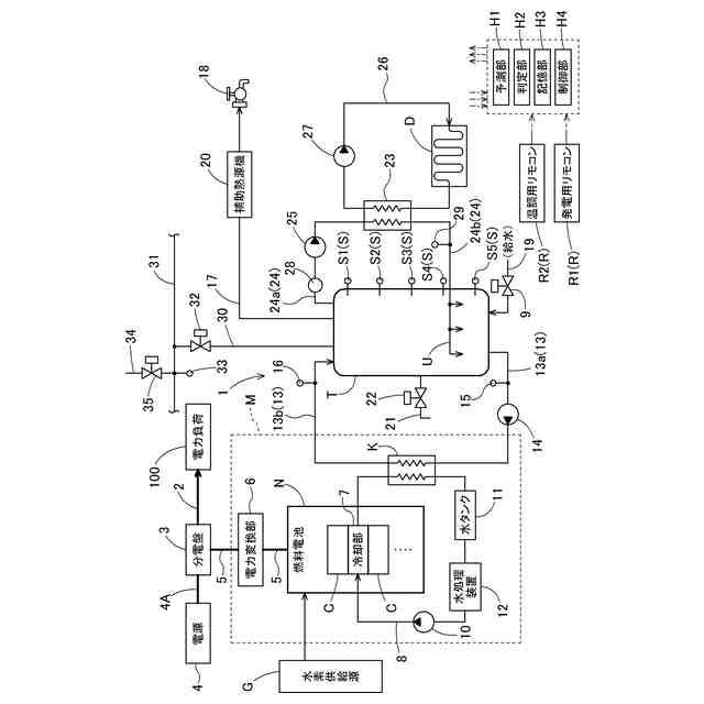 第一の住戸に配置され、水素の供給により発電する第一燃料電池と、前記第一燃料電池の排熱によって熱せられた湯水を貯湯する第一貯湯タンクと、前記第一貯湯タンク内の湯水の温度を検出する第一温度センサと、前記第一貯湯タンク内の湯水の給排を制御する第一制御部と、前記第一温度センサの検出温度に基づいて前記第一貯湯タンク内の熱量を放出する必要があるか否かを判定する第一判定部と、を有する第一燃料電池ユニットと、