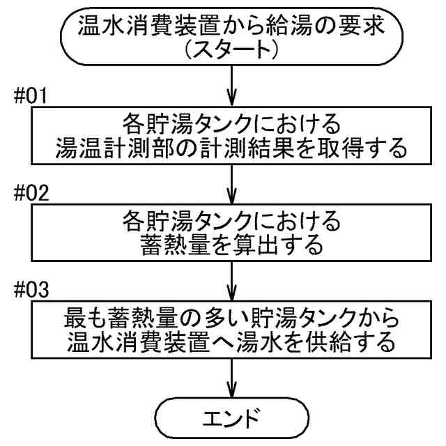 【解決手段】水素の供給により発電する燃料電池と、燃料電池の排熱を湯水に蓄熱する貯湯タンク8と、を有する蓄熱ユニットと、貯湯タンク8に貯湯された湯水を消費する第一消費部80と、複数の蓄熱ユニットの夫々の貯湯タンク8に対応して設けられ、貯湯タンク8から第一消費部80へ湯水を供給する際の湯量を調節する複数の調節機構56と、第一消費部80の要求に応じて複数の調節機構56の状態を変更させることによって複数の蓄熱ユニットの少なくとも一つから第一消費部80への湯水の供給を現出させる状態変更部90と、が備えられている。