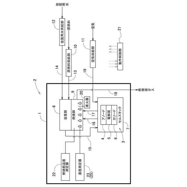 そこで本特徴構成では、動作制御部は、着火処理を行った後、燃焼部の内部の温度が所定の温度変化傾向を示さない場合、アノードに第1ガスを供給し且つカソードに第2ガスを供給している間に着火器を着火作動させる着火処理を再度行う。その結果、燃焼部での可燃性成分の燃焼を開始させることができる。