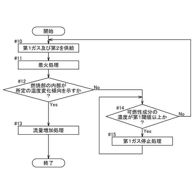 着火処理が行われて可燃性成分の燃焼が正常に開始された場合、燃焼部の内部の温度は所定の速度で上昇する等の温度変化傾向を示すが、そのよう温度変化傾向を示さない場合は、燃焼部での失火が発生している等、可燃性成分の燃焼が正常に開始されていない可能性が高い。