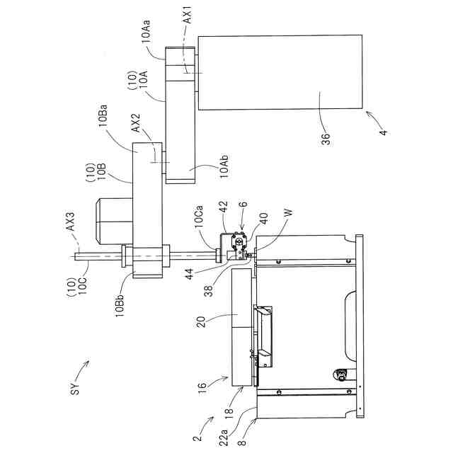 本発明において、前記延在方向と前記開閉方向に直交する直交方向から見て、前記第2の傾斜面を先端側に延長した先端側の仮想線と前記搬送台の水平な搬送面とのなす先端側角度αが、前記第1の傾斜面を基端側に延長した基端側の仮想線と前記搬送面に平行な平行線とのなす基端側角度βよりも小さく設定されていてもよい。この構成によれば、先端側角度αを小さくすることで、搬送台に対して僅かに傾いたワークをすくい上げやすくなる。また、基端側角度βを大きくすることで、第1の傾斜面と第2の傾斜面とのなす傾斜角度γが大きくなる。
