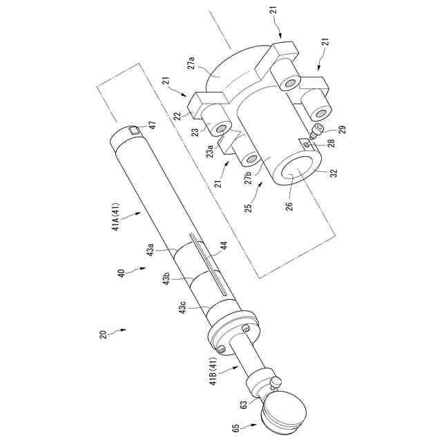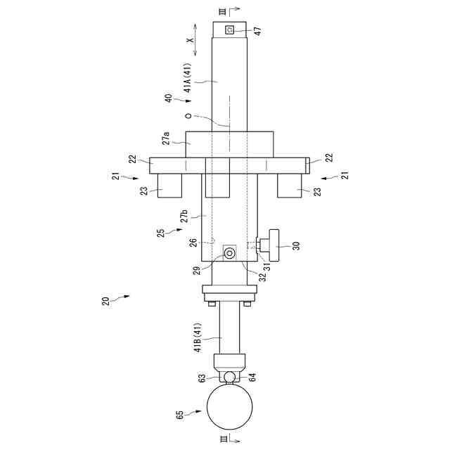 【解決手段】変位量測定治具20は、被取付部21と、被取付部21と一体を成した筒状の保持管25と、保持管25に保持される測定機能部40と、を備えている。測定機能部40は、保持管25を軸方向に貫通する態様で保持管25に内嵌する支柱部材41と、支柱部材41の一端側において保持管25の軸方向と直交する軸直交方向に摺動可能に保持された測定子47と、軸直交方向の変位量を軸方向の変位量に変換する変換部材55と、軸方向の変位量を支柱部材41の他端側に伝達する伝達軸52と、支柱部材41の他端側に取り付けられ伝達軸52を介して入力された軸方向の変位量を出力するダイヤルゲージ65と、を備えている。