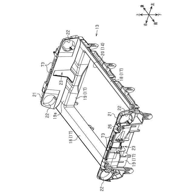 前記表示態様変更部は、前記表示突起部が、前記表示突起部の先端面が前記意匠面よりも外側に位置する外側位置と、前記先端面が前記外側位置での位置よりも内側に位置する内側位置との間で移動するように、前記第2移動部材を前記厚み方向へ移動させる移動機構を備え、
