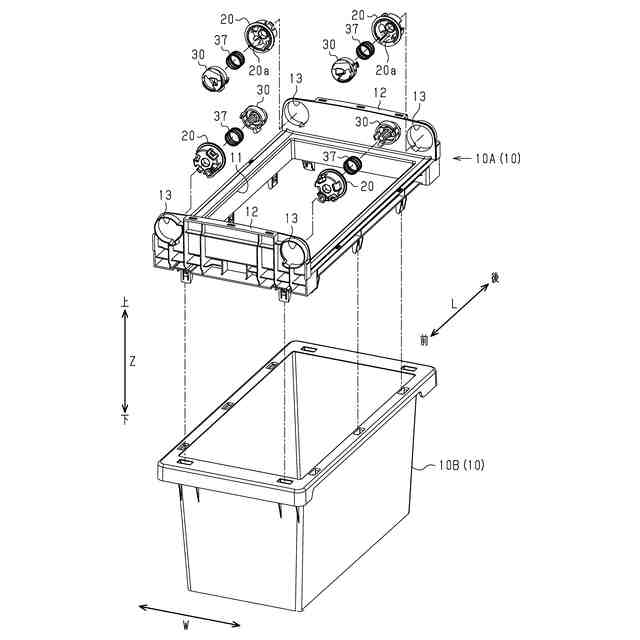 リッドは、リッド本体と、リッド本体の幅方向の一側に設けられ、リッド本体をボックス本体に連結する回動軸と、回動軸に対応して設けられた操作部とを有している。操作部は、当該操作部が操作されることで回動軸を上記幅方向の内側に移動させるように構成されている。