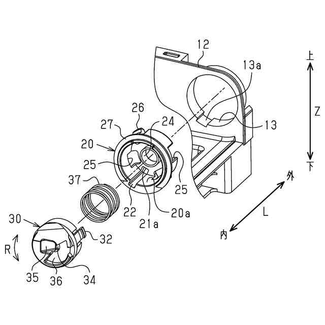 前記係止溝部は、前記リッド本体の開度が前記全開位置よりも開き側に変化する際、前記リッド側規制部により前記規制面が押圧されて前記シムが回転することに伴って前記係止凸部が前記段差部に係止されることで前記シムの前記軸線方向における移動を規制するように構成されている、