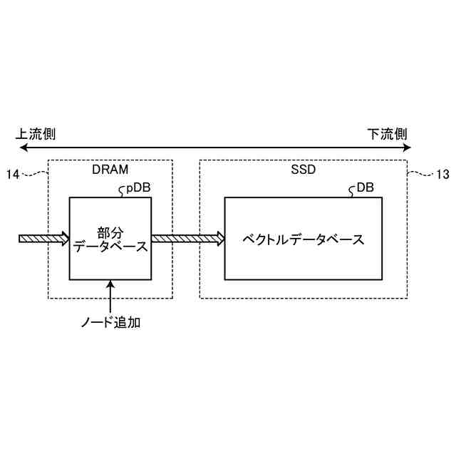 データをベクトル形式で管理するベクトルデータベースがある。ベクトルデータベースは、近似近傍探索(Approximate Nearest Neighbor Search : ANNS)などの探索動作を可能にする。ANNSのアルゴリズムの一例として、DiskANN(Disk-based Approximate Nearest Neighbor search)が知られている。