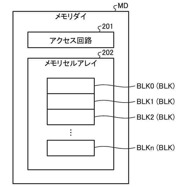 第1の実施形態にかかる各メモリダイの構成の一例を示す図。