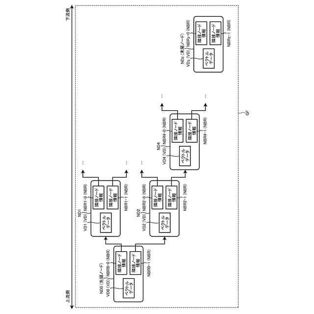 DiskANNによれば、ベクトルデータの群がストレージデバイスに配置され、ベクトルデータの群に対応した有向グラフを規定するインデックス情報が揮発性メモリに配置される。そして、インデックス情報によって規定された有向グラフに沿って、クエリに最も近いベクトルデータが探索される。