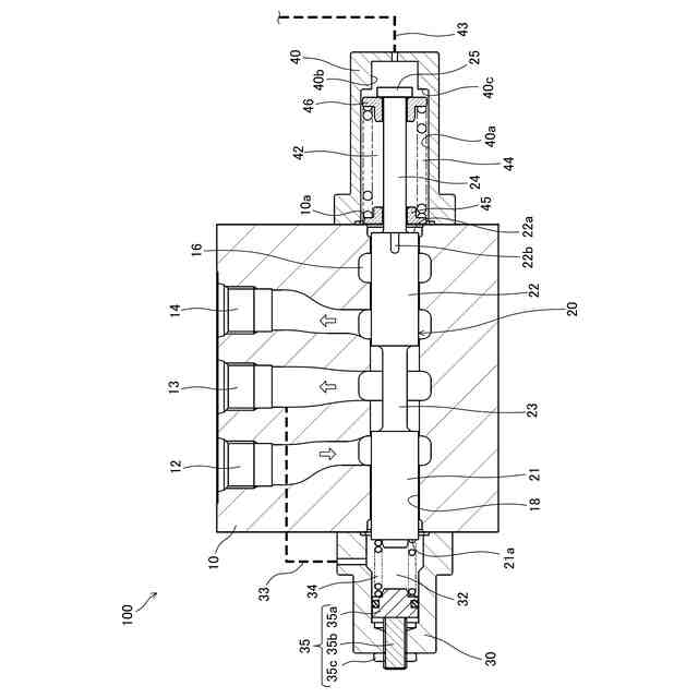 また、本発明は、スプール弁体に作用する第1付勢部材の付勢力を調節する付勢力調節部をさらに備え、第2付勢部材は、スプール弁体が一方の方向へと移動し、軸方向におけるスプール弁体の位置が所定の位置に到達するまでは、軸方向において一方の方向にスプール弁体を付勢する付勢力を生じることを特徴とする。