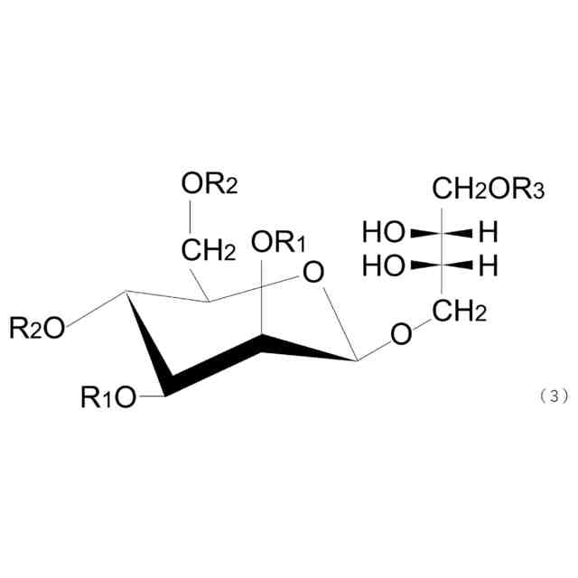 (式中、R1は、炭素数4~24の脂肪族アシル基であり、同一であっても異なっていてもよい。R2は、水素またはアセチル基であり、同一であっても異なっていてもよい。R3は、水素または炭素数2~24の脂肪族アシル基である。)