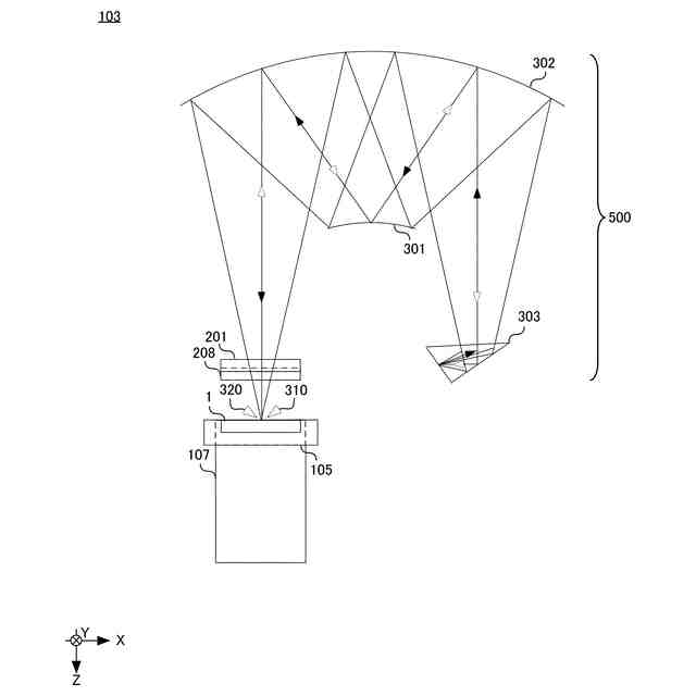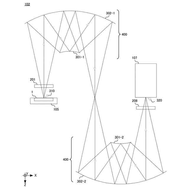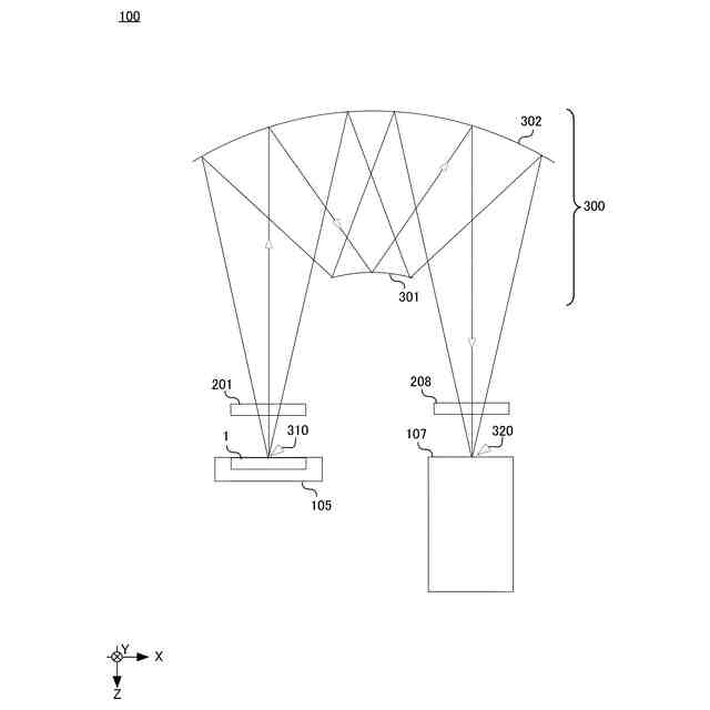 特許文献1には、「レーザ光による励起により発生したバイオチップ60からの蛍光は、ダイクロイックミラー3、ダイクロイックミラー23、バリアフィルタ11および光学系12を介してCCDカメラ13に入射する。」(段落0040)と記載されている。特許文献2には、「リレー光学系51は、正のパワーを有する第1ミラー46、負のパワーを有する第2ミラー47、および、正のパワーを有する第3ミラー48を有する。ロッドインテグレータ45から出射した光は、リレー光学系51の第1ミラー46、第2ミラー47、および、第3ミラー48を介して、TIRプリズム53で全反射され、画像表示パネルであるDMD(第1光変調素子)49に照明される。」(段落0042)と記載されている。