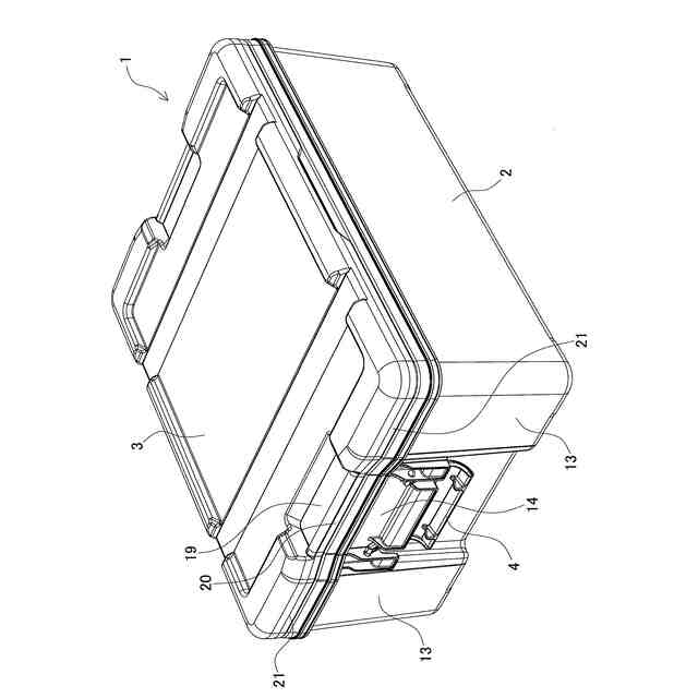 しかしながら、前記した従来の容器では、バックルによる蓋の固定が、ユーザーの意思と無関係に外れることがあった。また、バックルが破損することもあった。バックルが、容器本体の外形から突出して配置されているためである。このため、外部の物、例えばユーザーの手、がバックルに引っ掛かることがあった。そのことにより、バックルの状態が変わってしまうことがあった。