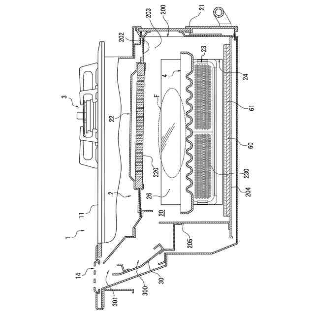 底反射部は、赤外線を透過する底透過部で覆われているグリル。