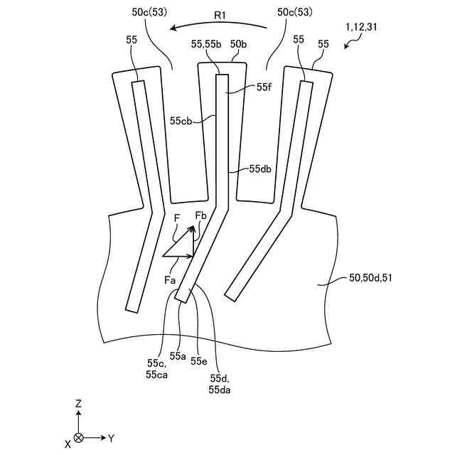 この種の回転電機では、案内部において風による機械損失である所謂風損は、回転電機の効率が低下する要因の一つである。