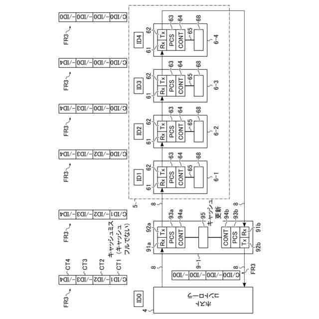 第3通信フレームを、前記通信路を介して、前記複数の通信デバイスのうち前記第1通信デバイスとは異なり前記キャッシュデバイスに接続される第2通信デバイスから受信する第2受信回路と、