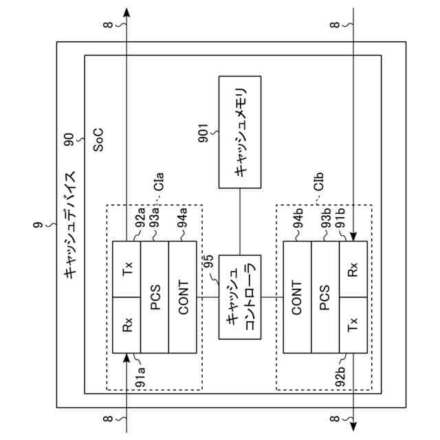 第1実施形態の変形例に係る通信システムが備えるキャッシュデバイスの一例を示すブロック図。