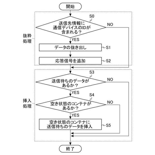 前記第2制御回路は、前記第2受信回路が受信した第6通信フレームの第2コンテナに、記憶している前記第1データを挿入し、