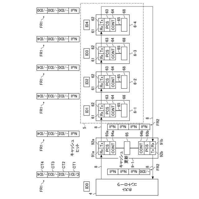 前記ホストコントローラと前記キャッシュデバイスとを接続し、かつ前記キャッシュデバイスと前記複数の通信デバイスとをリング状に接続し、複数のコンテナを有するシリアル信号の通信フレームを伝送可能である通信路と、