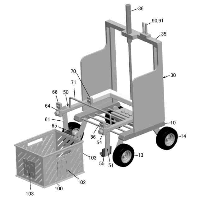 収穫作業機を利用して作物をコンテナに収容する場合、圃場にコンテナを降ろしながら作業する場合があるが、このコンテナを自動で回収する作業機がなく、人が運搬車を手動で走行させながら回収する作業を行っている。