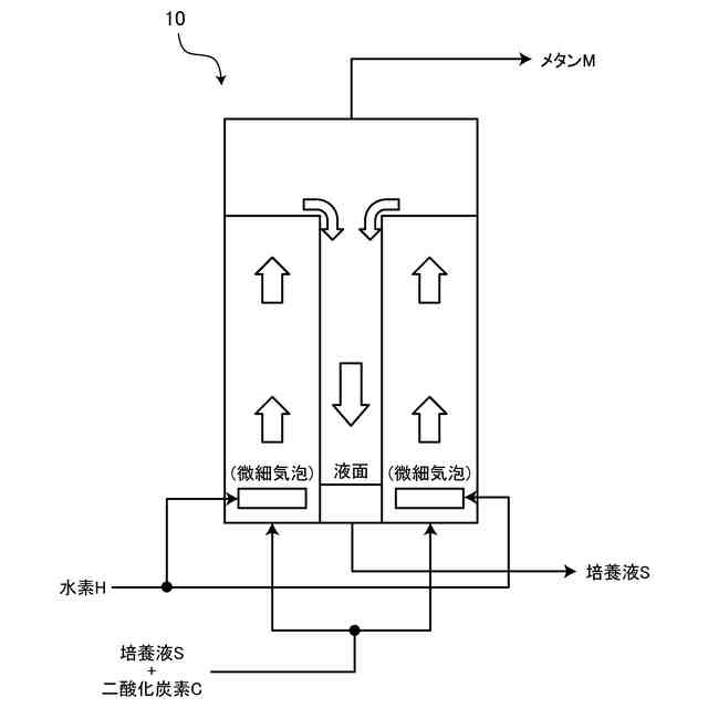 微生物(適宜、「菌体」)を利用したメタネーション(methanation)は、二酸化炭素と水素を培養液中に導入し、培養液内に存在するメタン生成菌(適宜、「メタン菌」)によってメタンを生産する手法である。