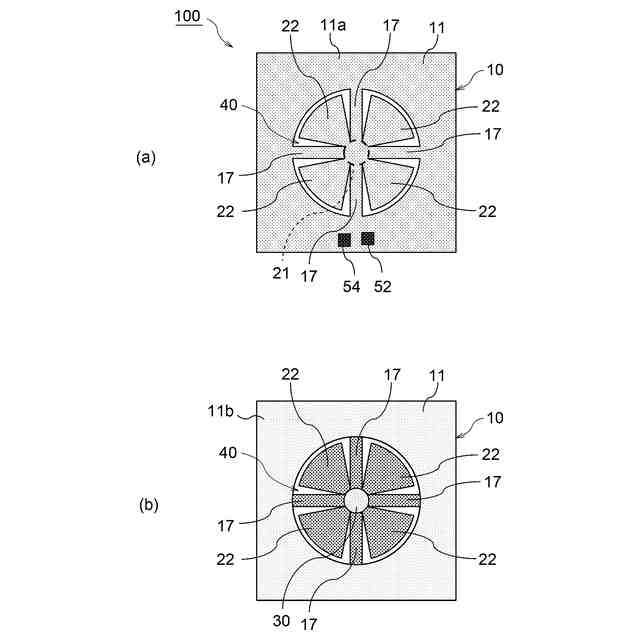 上記構成において、前記複数の片持ち梁は、厚さや形状が同じでかつそれぞれ放射状に延びる長さが異なる構成としてもよい。