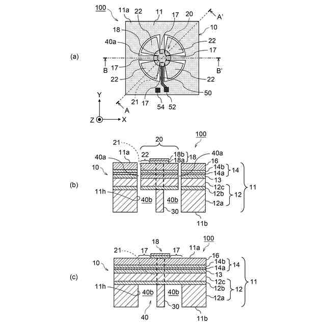 従来、圧電トランスデューサとして、圧電型微細加工超音波トランスデューサ(pMUT:Piezoelectric Micromachined Ultrasonic Transducer)が知られている。pMUTは、MEMS技術を用いて基板上に圧電体と電極を微細に形成し、超音波の送受信が可能なデバイスである。pMUTは、基板上に圧電体を一対の電極で挟んだ構造を有するメンブレンを備え、基板にキャビティが設けられるため、メンブレンが振動して撓みやすい構造となっている。pMUTでは、電極に電圧を印加した場合に物質が変形する逆圧電効果および物質の変形により電圧が生じる圧電効果を利用している。pMUTは、逆圧電効果および圧電効果によるメンブレンのたわみ振動により超音波を送信および受信でき、測距センサや指紋センサなどで用いられている。