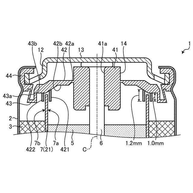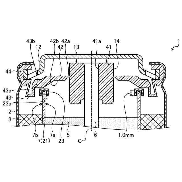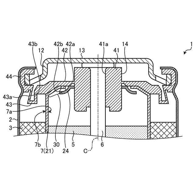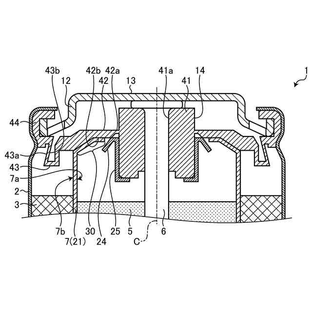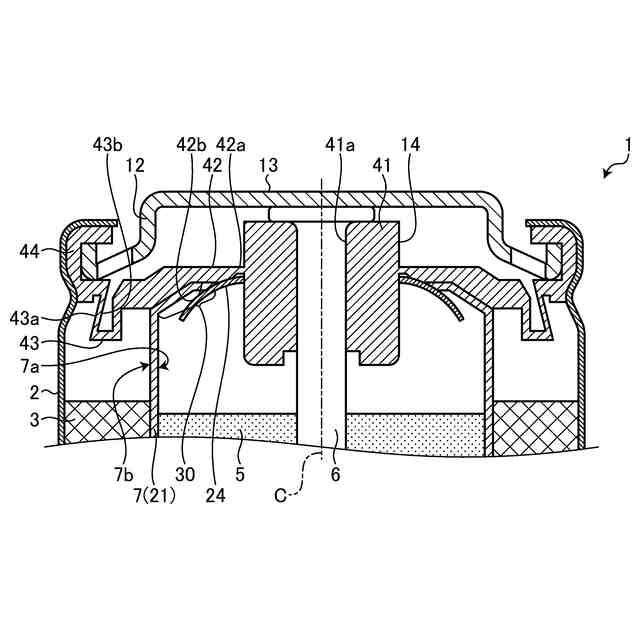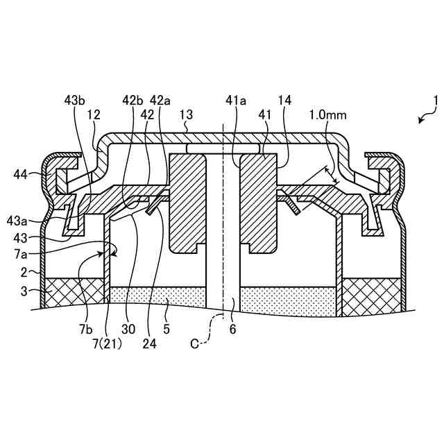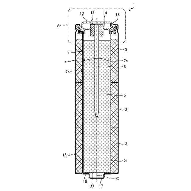図3は、実施の形態1の第1の変形例にかかるアルカリ電池の断面図であって、図1に示すA部分に相当する部分を拡大した部分拡大断面図である。