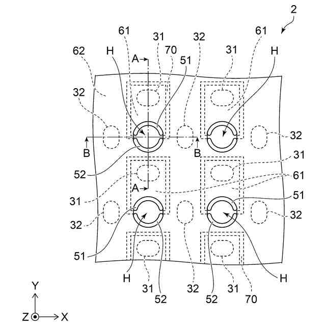 複数の前記貫通孔、複数の前記第1接続部、及び複数の前記第2接続部を備える、請求項2に記載の電子デバイス。