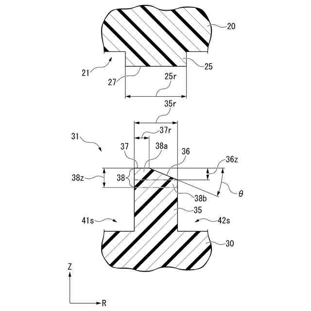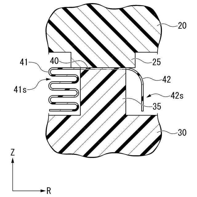 第1溶着部の先端に傾斜面が形成されるので、第1溶着部の溶融領域の体積は、第2方向の内側から外側にかけて小さくなる。そのため、溶融領域の溶融により発生する外側溶着バリの体積は、内側溶着バリの体積より小さくなる。