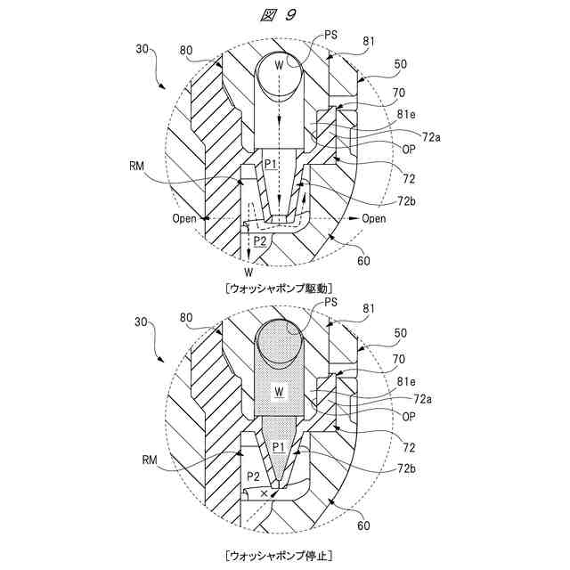 前記スリットは、前記洗浄液の噴射時に開かれて、前記洗浄液の非噴射時に閉じられる、