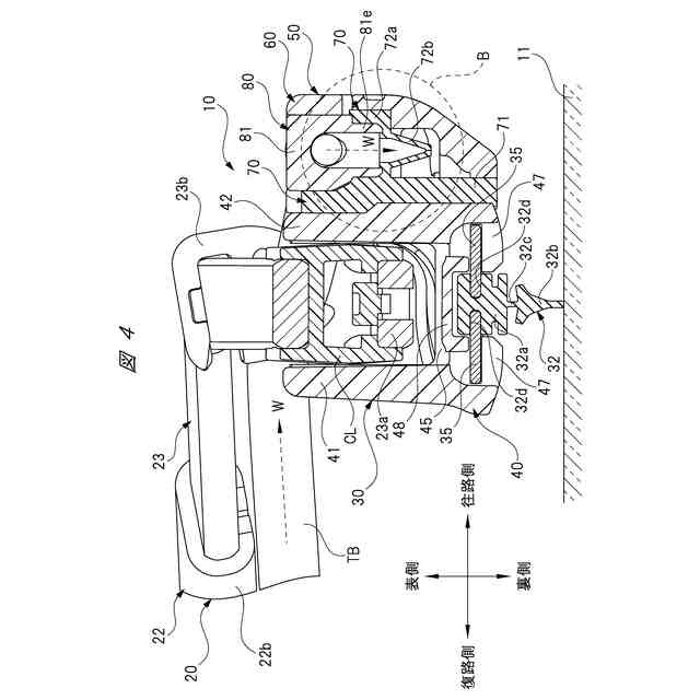 弁本体の動作を示す図4の破線円B部の拡大図である。