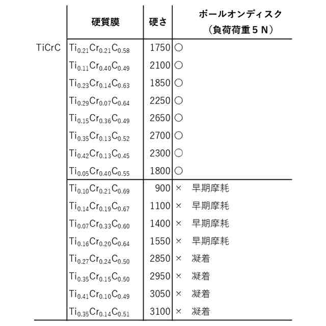 (但し、Mはクロム又はバナジウムであり、a+b+d=1であるときに、aは0.05以上0.45以下)であり、前記被膜のビッカース硬さHvは、1500以上2800以下である。