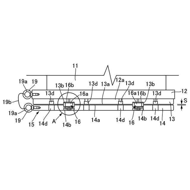 前記間隔部分を挟んだ一方の前記プレート部材及び他方の前記プレート部材の双方の対向面、又はいずれか一方の前記プレート部材の対向面には、防振ゴム部材が係着される係着凹部が、これらの対向面の少なくとも3箇所に形成されおり、