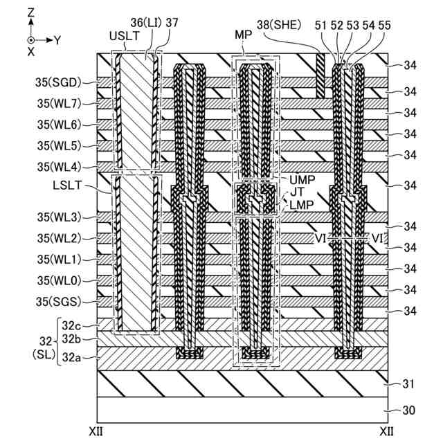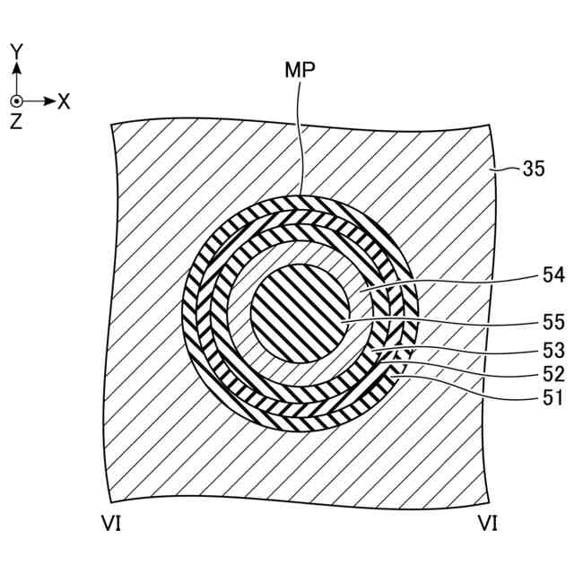 図6のVI-VI戦に沿ったメモリピラーのXY平面の断面図。