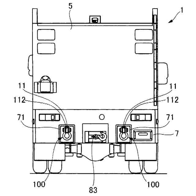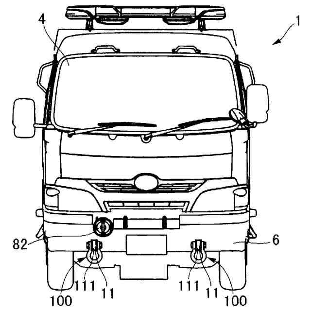 特許文献1のような従来の防災車両では、ロープを繋いだりフックをかけたりするための防災車両用シャックルが備わっていることがある。この防災車両用シャックルは、ウインチ装置の使用時に活用することができる。また、従来の防災車両では、このようなワイヤの車外引出部と防災車両用シャックルとを車両前部だけでなく車両後部に設けることがある。