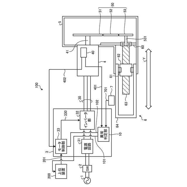 前記モータの回転軸を回転させるための電源の供給をオンオフするスイッチをさらに含み、前記判定部は、異常が発生していると判定した場合に、前記スイッチをオフにすることが好ましい。