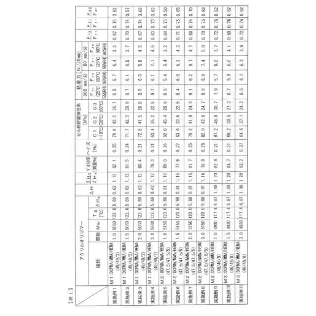 60℃、相対湿度90%、剥離角度180°および引張速度300mm/分の条件での剥離試験において粘着力F