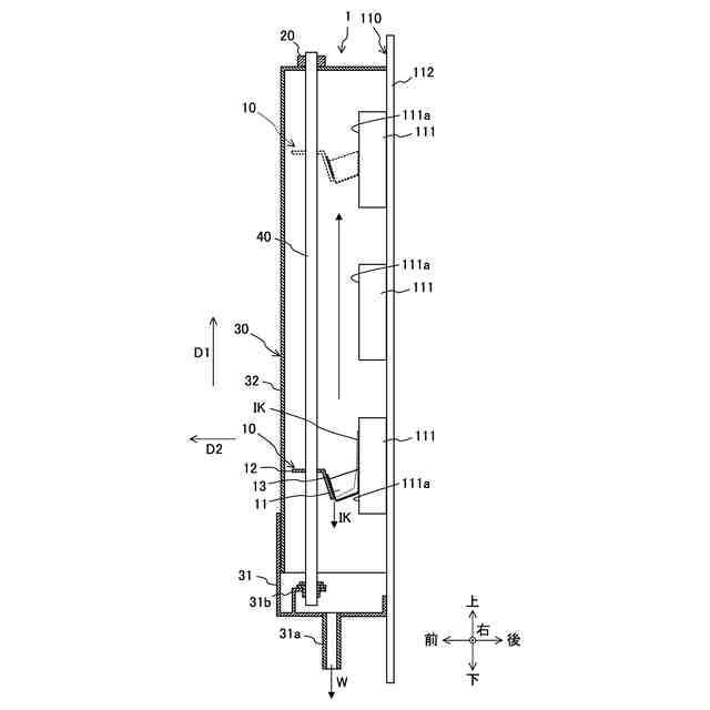 水平方向にインクを吐出するインクジェットヘッドをワイプするためには、インクジェットヘッドを鉛直下方向に向くように移動させて、鉛直下方向にインクを吐出するインクジェットヘッドと同様にワイパを水平に移動させながらワイプを行うことも考えられる。しかし、このようにインクジェットヘッドの向きを可変にすると、インクジェットヘッドが移動するスペースの専有面積が大きくなったり、インクジェットヘッドの向きを可変にする駆動機構が必要になったりする。