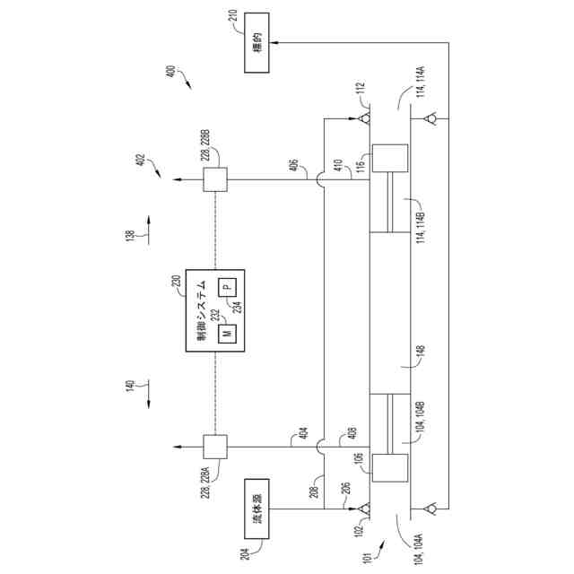 前記導管システムは、前記シリンダの前記第2チャンバ部分と前記追加のシリンダの前記第4チャンバ部分の各々に流体をやり取りするように結合する導管を備え、