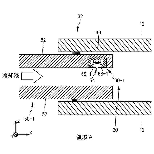 前記液体ポンプは、前記冷却液と接した状態で移動することで、前記冷却液を移動させる移動部を備え、