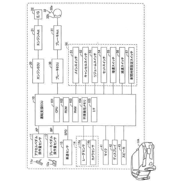 車両(VA)の運転支援制御(ACC、LTA)に係る設定状態に応じて前記運転支援制御を実行するように構成された制御装置(10)と、