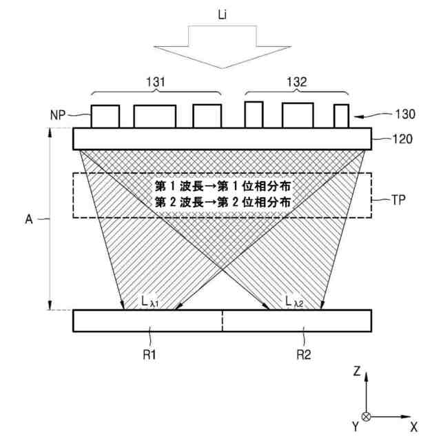 み、第1ナノポストと第2ナノポストは、色分離レンズアレイに入射する入射光のうち、
