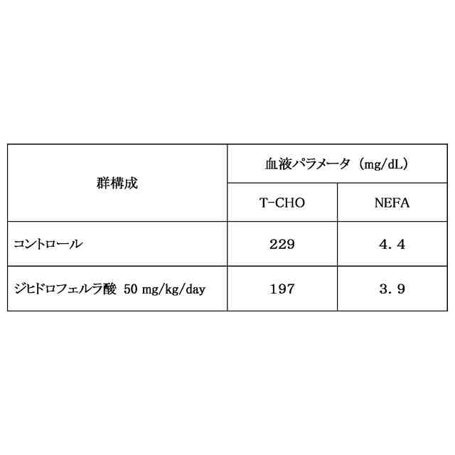 肥満は、脂質代謝に異常をきたし、前述したとおり脂質異常症等の生活習慣病の原因となる。ここで、脂質異常症は、血清脂質すなわちコレステロール、トリグリセリド、リン脂質および遊離脂肪酸等のうち1種以上の成分が異常に増加して様々な障害を招く疾病である。コレステロールは、動物生体膜の構成成分であるとともにステロイドホルモン等の出発物質であり、動物にとって極めて重要な物質である。しかし、血中コレステロールが過剰であると、血管の内側にコレステロール等が蓄積して動脈硬化の原因となり、虚血性心疾患や脳梗塞などの致命的な疾患に至るおそれがある。一方、遊離脂肪酸は、脂肪細胞から血中に放出され体内のエネルギー源として利用されるが、余剰分は肝臓に取り込まれ中性脂肪に再合成される。血中遊離脂肪酸が過剰であると、慢性的に中性脂肪が過剰の状態となって脂質異常の状態が継続し動脈硬化の危険性を高める。また、血中遊離脂肪酸が過剰であると、インスリン抵抗性が高まって糖尿病の病態が進行するおそれがある。