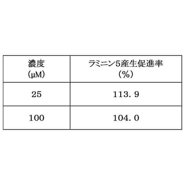 皮膚を構成する表皮と真皮との境界部には、基底膜が存在する。基底膜は、表皮と真皮とを繋ぎ止めるだけでなく、皮膚機能の維持に重要な役割を果たしている(非特許文献2参照)。基底膜の主要骨格は、IV型コラーゲンからなる網目構造をしている。基底膜と表皮との境界に存在し、基底膜と表皮とを繋ぎとめているのがラミニン5を主成分とする各種糖蛋白質で、かかるラミニン5は、表皮に存在する表皮角化細胞より産生される。若い皮膚においては、基底膜の働きにより表皮、真皮の相互作用が恒常性を保つことで水分保持、柔軟性、弾力性等が確保され、肌は外見的にも張りや艶があってみずみずしい状態に維持される。