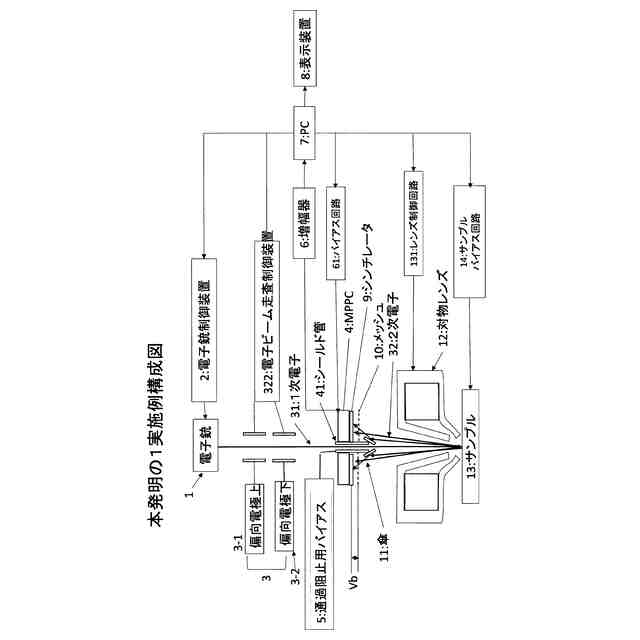 【構成】電子ビームを放出する電子銃と、放出された電子ビームを縮小してサンプルに照射する対物レンズと、サンプルに照射された電子ビームを平面走査する電子ビーム走査装置と、電子ビーム走査装置によって照射された電子ビームによってサンプルから放出された電子を、光に変換するシンチレータと、シンチレータからの光を、受光して電気信号に変換するMPPCと、MPPCの中央に形成された1次電子ビームの通過穴とを備え、シンチレータで変換した光を、MPPCが電気信号として検出し、電子を高感度かつ低ノイズに検出するように構成する。
