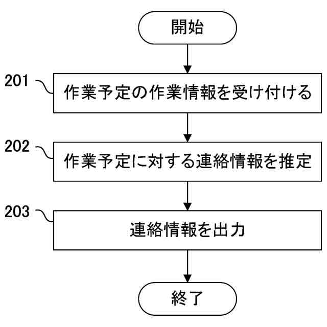 作業情報と連絡情報とを用いて生成された機械学習モデルを用いて、前記作業予定の作業情報から、前記作業予定に対する連絡情報を推定する推定部と、
