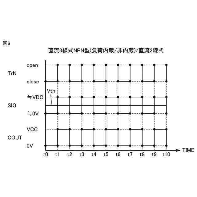 図3から図5に示した直流3線式または直流2線式センサを接続した際のセンサ入力回路の動作を説明するための動作波形図である。