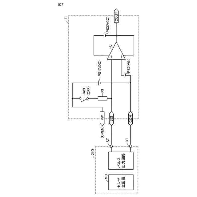 センサ入力回路とパルス出力型センサとの接続状態を説明するための図である。